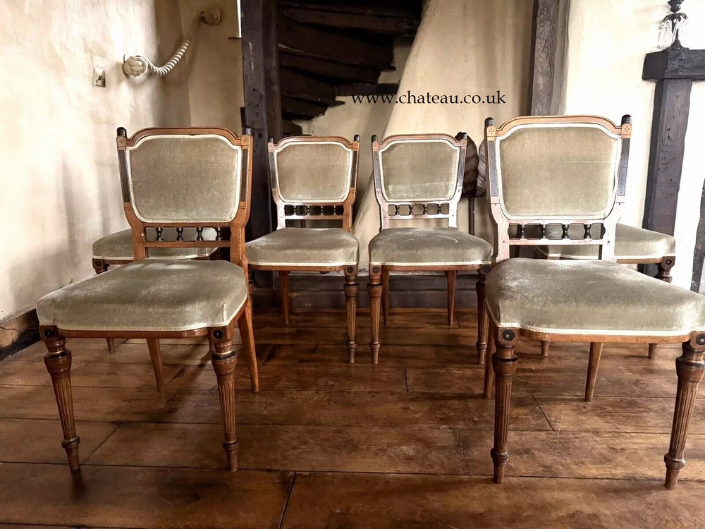 SOLD - Aesthetic Movement Set 6 Edwardian Antique Mahogany Diner Sage Velvet Green Dining Chairs , Chairs & Seating ,